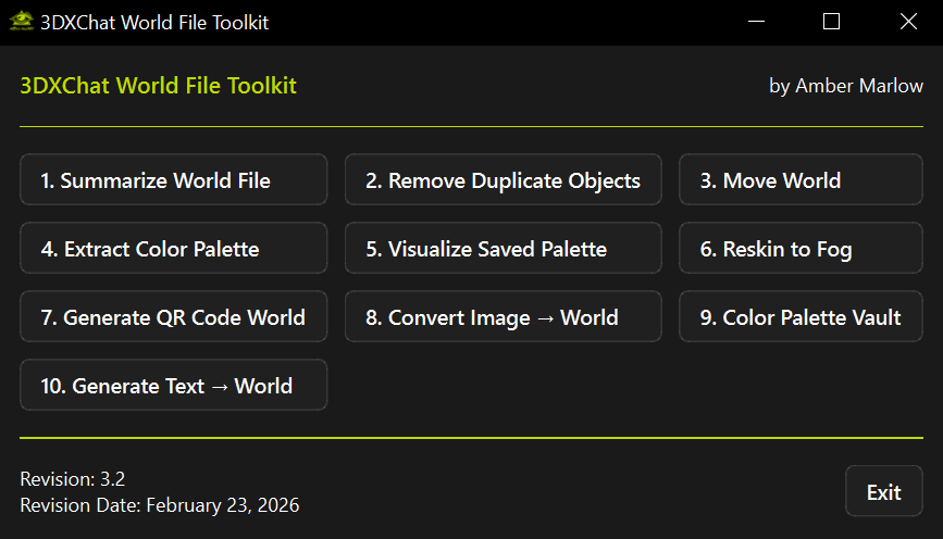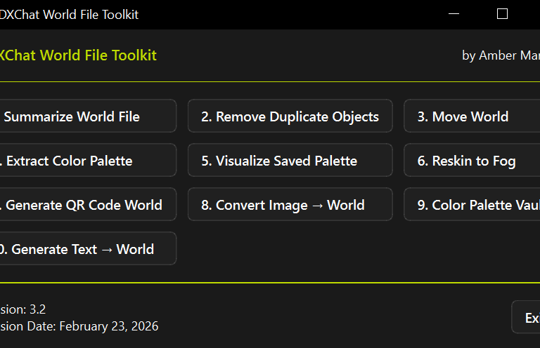 Feb 23, 2026 - 3DXChat World File Toolkit updated.