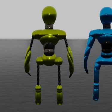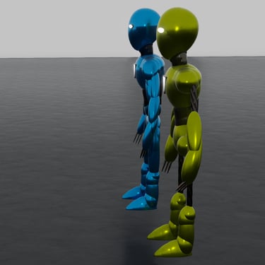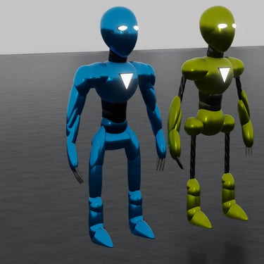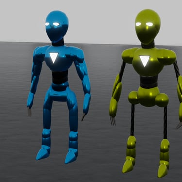 - Both robots can be colored/textured easily.