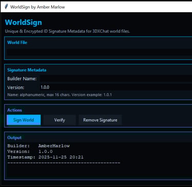It embeds a tamper-evident signature into your world files. It's designed to protect your work and give buyers confidence. These signatures cannot be overwritten or removed without the correct seed. Any attempt to bypass or modify them will be detectable to anyone who loads the file. This is by design. It preserves builder integrity and prevents impersonation. To maintain the security and fairness of the system, please avoid attempting to reverse engineer or undermine the tool. It’s provided as-is, fully self-contained, and with limited support.